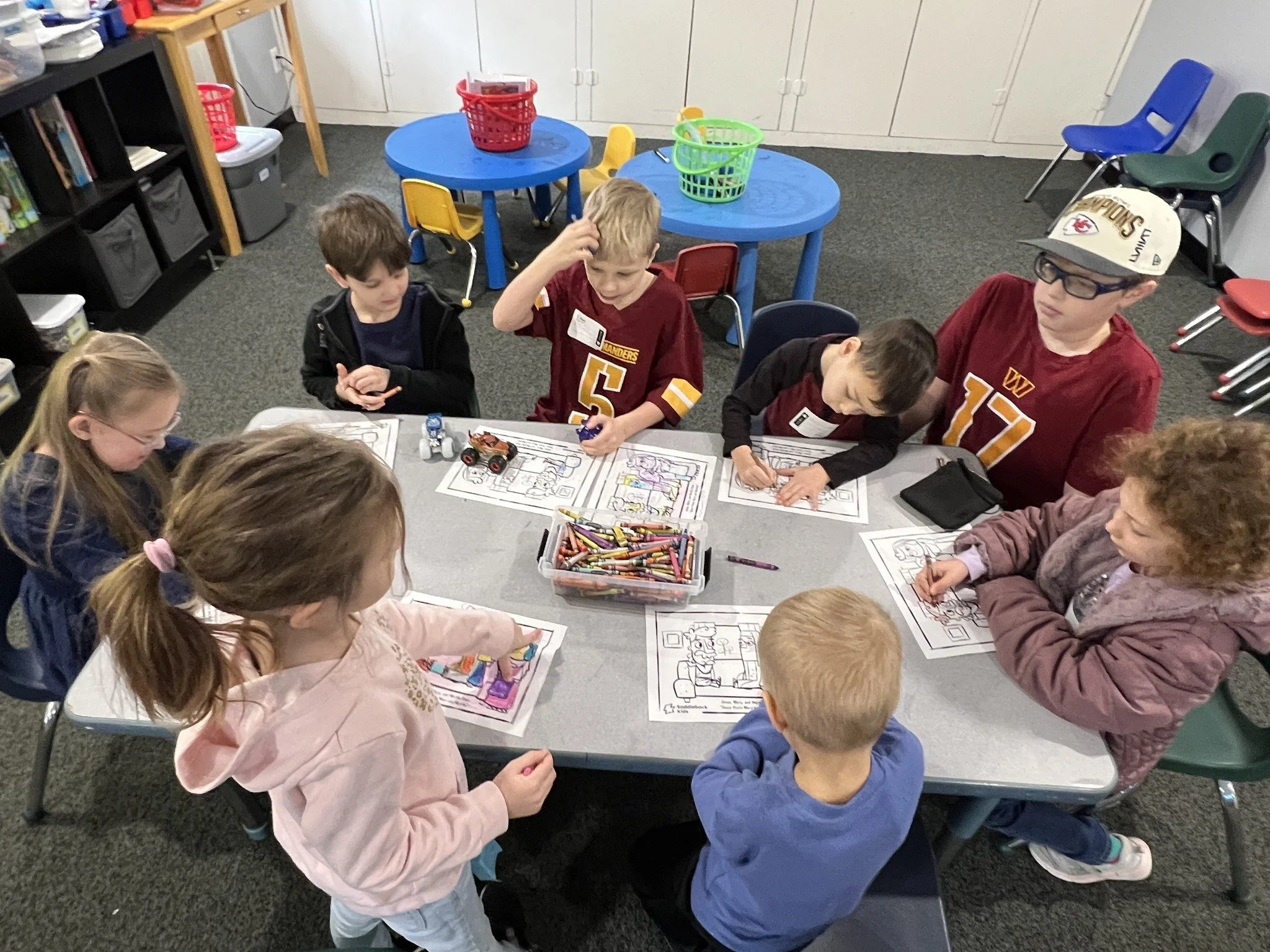 We strive to provide an age-appropriate experience for each child that is filled with Bible stories and fun activities that help them learn about Jesus and grow in their relationship with Him. This helps them to learn Biblical truths and apply them to their lives in a fun and interactive way. We spend time in worship, prayer, and studying God’s Word!